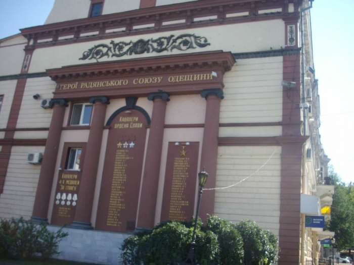 В студенческие годы одним из самых чудесных развлечений было залезть на крышу оперного театра. Вид оттуда - просто божественный на порт и здание думы. Но никакого флага на крыше театра раньше не висело. Ещё очень впечатляет вывеска у филармонии: "одеськiй нацiональнiй фiлармонiчьнiй оркэстр!". Значит ли это, что там собраны музыканты исключительно по национальному признаку ? Но рядом с театром осталась Доска героев Радяньского Союзу. Союза уже нет, братские республики стали врагами, а общие герои остались.