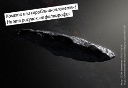 Долой конспирологию, придерживаемся строго научных фактов, хотя в данном случае и то, и другое не просто. В октябре 2017 года астрономы с Гавайев обнаружили на расстоянии около 24 миллионов км от Земли космический объект, пересекающий Солнечную систему со скоростью около 90 км/с, причем весьма вероятно, что это тело происходит из-за пределов Солнечной системы, откуда-то снаружи. Объекту дали имя «1I/’ Oumuamua», что на местном языке означает «Посланник». Индекс 1I перед названием относит пришельца к новому космическому классу, объектов с таким индексом до сих пор не было, единица говорит о том, что это первый обнаруженный объект такого типа, а I означает «interstellar», то есть межзвездный.