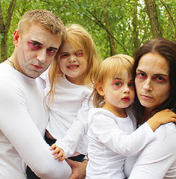 Без труда всей семьей можно перевоплотиться в таких мистических персонажей как мумии, вампиры и летучие мыши, оборотни, монстр и подруга Франкенштейна, семейка Аддамс, зомби, Калавера – сахарный череп (символ мексиканского Дня мертвых), охотники за привидениями, пугало, клоуны. Дайте волю фантазии!