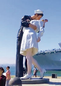 И к 60-летию Победы американский скульптор Сьюард Джонсон по сюжету фотографии изваял статую – Поцелуй победы. Ее копии разошлись по США.