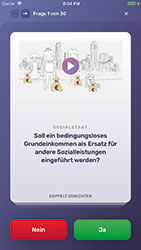 А вот приложение для Android-смартфона WahlSwiper – это действительно достойная альтернатива W-O-M. Оно тоже сконципировано для любых выборов в Германии, не только в Бундестаг, но и в земельные ландтаги и т.п. Интересующие нас в данный момент выборы доступны к оценке с 20-го августа. В WahlSwiper предлагаются только два возможных ответа – Ja (да) и Nein (нет), причем некоторые особенно важные политические вопросы получают удвоенную оценку (doppelt gewichtet). Сравнение ведется по всем представленным на выборах партиям.