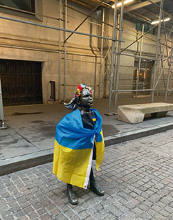 И над самым знаменитым русским рестораном на Манхэттене, детищем великого Романа Каплана «Русский Самовар», развевается украинский флаг. И на доме, где жила героиня культового фильма «Секс в большом городе», в районе West Village, – желто-синий стяг. И в церквях. И на корпусах университетов. И уменьшенная статуя Свободы на углу 61-ой улицы и Мэдисон-авеню тоже обнимает самое известное сегодня в мире знамя. А знаменитая «Бесстрашная девочка» напротив входа в здание Нью-Йоркской фондовой биржи – теперь с украинским веночком на голове. И с флагом, конечно. И после мюзиклов – собирают деньги на помощь Украине. И вообще – поддержка этой стране невероятная! Но! Русскую культуру никто не отменял. И не собирается.