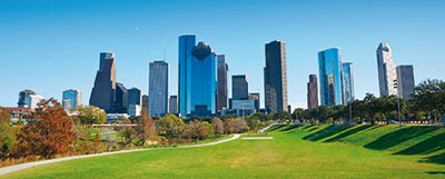 Еще до отъезда видел интересное фото Хьюстона в ненастный день: сплошные тяжелые облака вспарывают три группы высотных зданий. Это – Центр (Downtown), Второй центр (Uptown), Медицинский центр (Texas Medical Center).