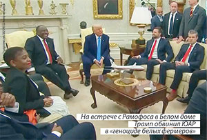Во время встречи в Белом доме Рамофоса на голубом глазу заявил Трампу, что «ЮАР является конституционной демократией, глубоко укоренившейся в верховенстве закона, справедливости и равенстве». Ни малейшего геноцида белых нет и в помине. А что есть? А есть превосходный закон, который «обеспечивает справедливый и равноправный доступ к земле в соответствии с Конституцией».